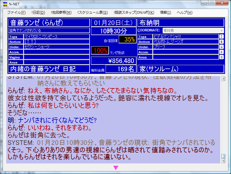 ヒロインの承認を受けた上で予定の日が訪れると、その日は『イベント日』となり、プレイと撮影が実行されます (といってもこのゲームは文字だけで表現され、画像はありませんが)。