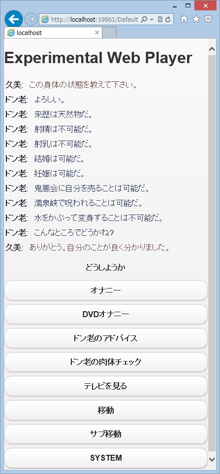 IE10上で動いているISSG。(あくまで実験です。この調子で全機能が動くとは思わないでください)。jQueryMobile上なので、そのままスマホでも動くはず。